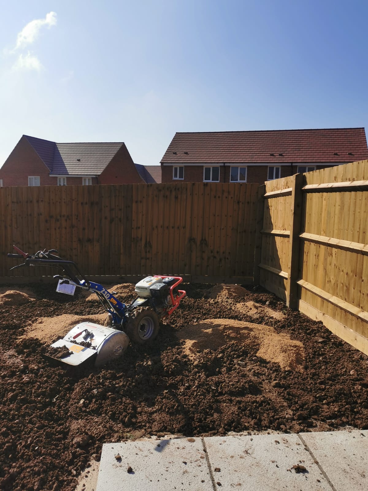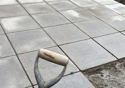 This new build property in Ashbourne was left as a blank slate. The paving used was a 600 x 600 textured buff in dark grey slab. We were required to excavate to near double the depth in places to get down to solid ground and ensure a solid base was laid for the paving. The lawn required plenty of fresh screened topsoil to level with the existing paving and blend all areas of the lawn in. We used a premium grade turf to finish the project.